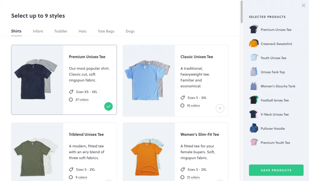 You can now sell up to 9 product types per campaign, allowing your buyers more choices when selecting the apparel items they wish to purchase.
