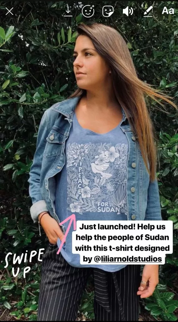 Take advantage of the Swipe Up feature if you have it. According to Instagram, you have access to this feature if you are a business account, and have at least 10,000 followers. If you don’t have this feature, no worries, just make sure the link to your Bonfire Campaign is in your bio, and point your community there to purchase a shirt.