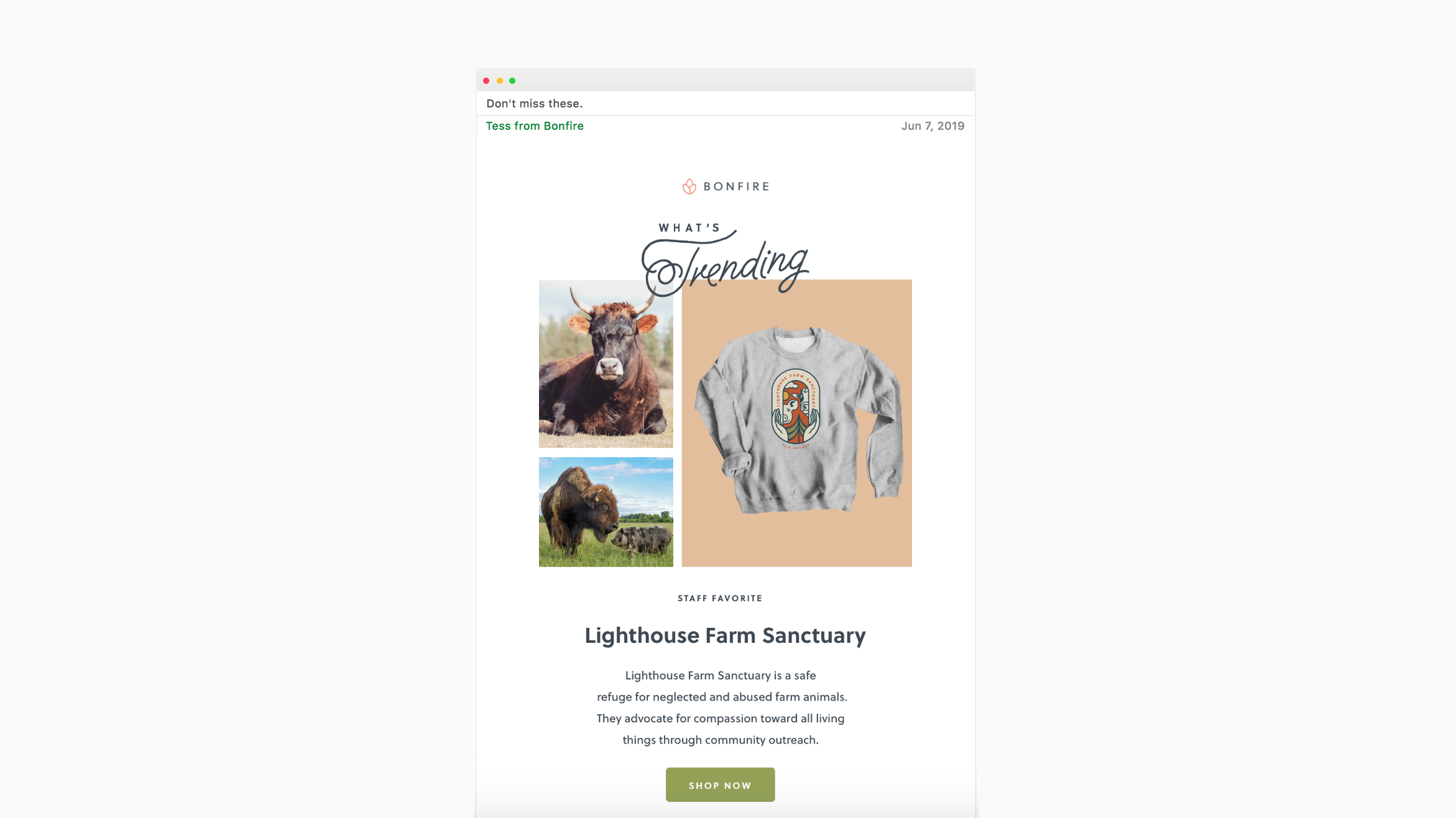 If your organization or brand has an established email list, you may find that this becomes your most valuable converter of sales for your Bonfire Campaign. The people who have opted to sign up for your newsletter likely have already supported you financially in the past, or at the very least, shown interest in staying up to date with the happenings of your business.