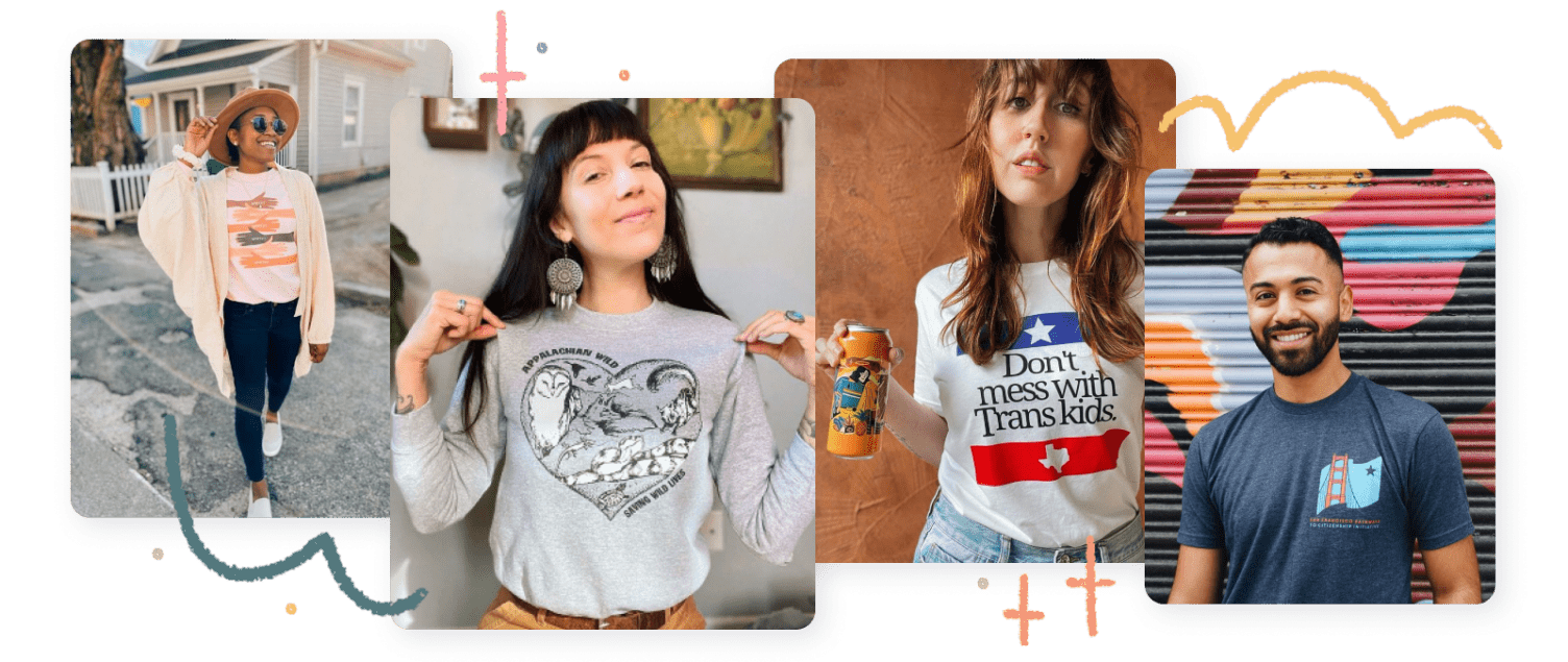 You worked hard to create a shirt design that your community would love, and now’s the time to show it off. A simple graphic of your t-shirt works well on social media. If you took the advice from Chapter 1 and purchased a few of your products ahead of time, you can take some photos of you or your friends/colleagues/community members wearing the products that you are selling. As you share photos of your merch, include explanations for the design choices you made. This will help people get a feel for your passion and investment in your campaign.