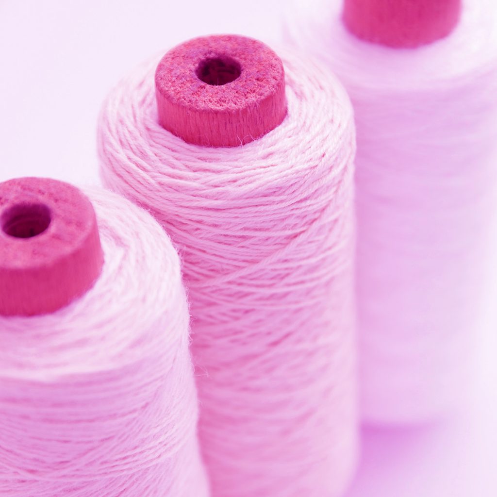 One way to dye fabric is to dye the yarn before it’s woven to create the fabric. Spools of yarn are dyed and then sent to where they will be sewn into the fabric they will become. This process is most common when creating garments that are striped or patterned since different colored yarn is needed to create the pattern. It can also be used when the fabric is heathered because different yarns are being woven together.