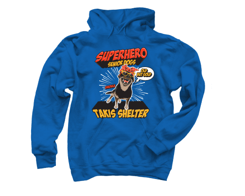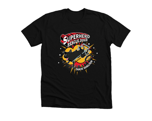 Because the first campaign was so well received, they decided to create a second t-shirt fundraiser, this time having the design feature, Grioula, a senior rescue dog that was adopted by Takis himself. This shirt raises awareness for senior dogs who still deserve a great life, and uses the slogan – old, but gold!
