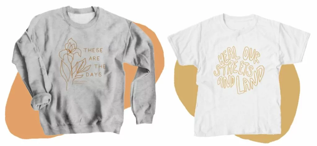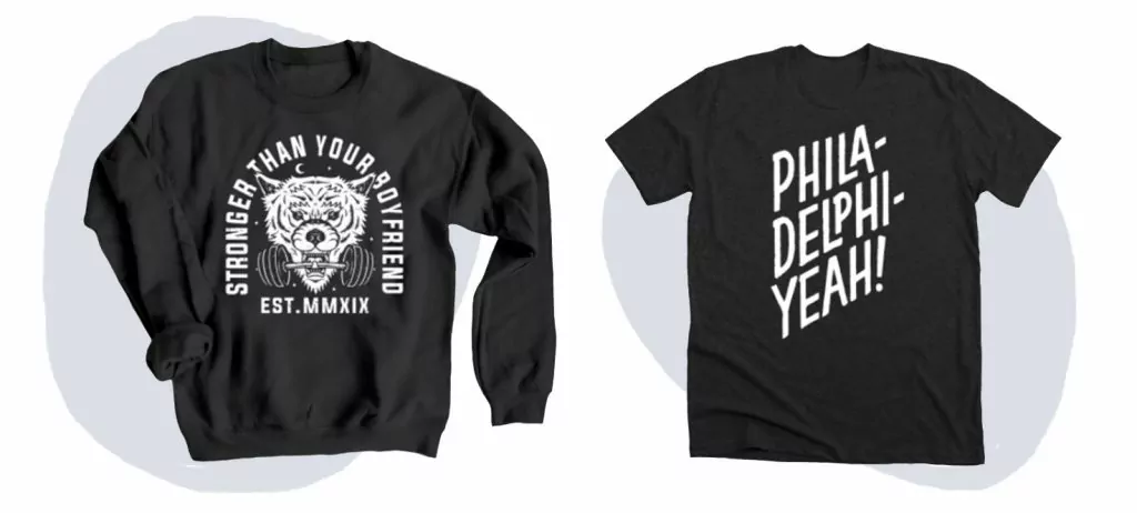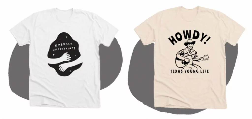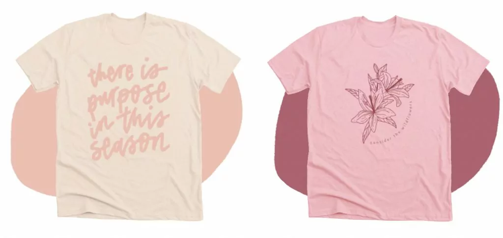This last one-color design idea works really well if you plan on limiting the color of products you plan to print on. You can create an intentional and monochromatic look by making your ink color a similar tone to the shirt.