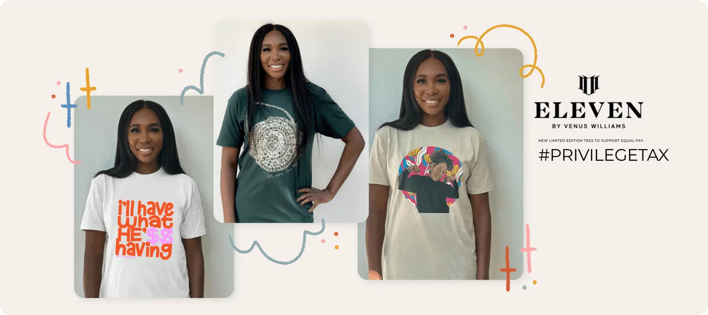 In honor of Women’s History Month, Venus Williams and her brand, EleVen by Venus Williams, have partnered with female artists Tafy LaPlanche, Delvene Cockatoo-Collins, and Keisha Leon, to design 3 limited edition t-shirts where campaign profits will be donated to Girls Inc.
