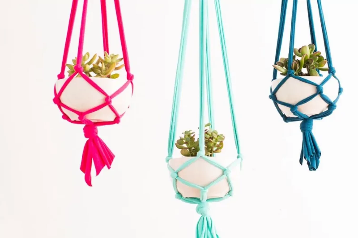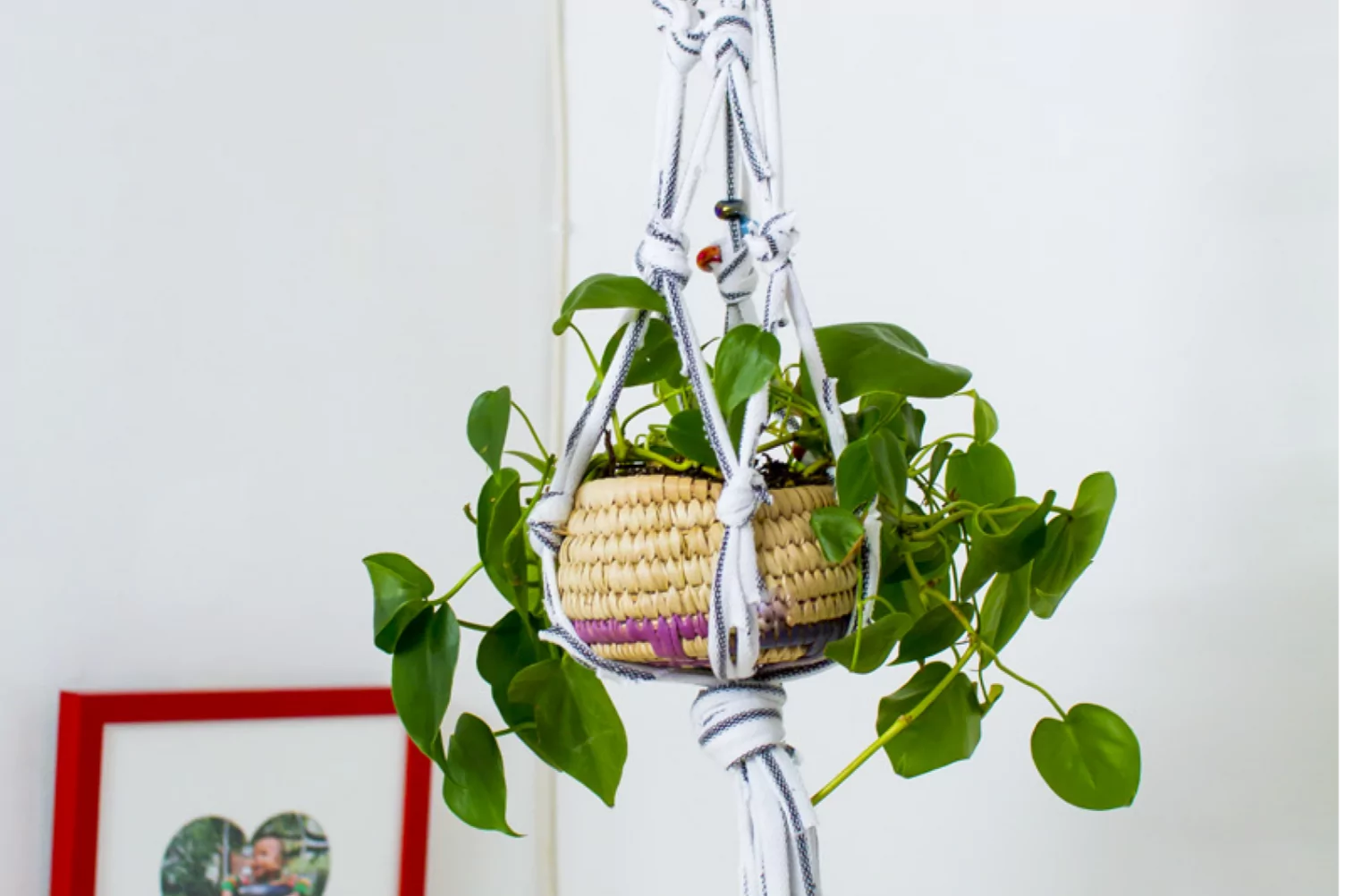 Did you know you can make a macrame-style plant hanger from your old tees in less than 30 minutes? Cut t-shirts into long strips of fabric. Then, knot them together to create a plant hanger. Once you’re done, you can hang your plant from the ceiling to display your work. Sounds like the perfect activity for a night in with friends!