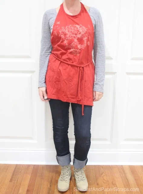 If you’re skilled in the kitchen, consider turning your old tee into a fun apron! It’ll protect your outfit from any messes and givesa fun new purpose to an old tee. Typically, this project just requires some creative cuts and minimal sewing.