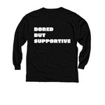 Bored but supportive, a Black Heather Premium Unisex TeeBored but supportive, a Black Heather Premium Unisex Tee (back-view)