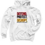 Defend, Protect, Disrupt, a White Pullover Hoodie