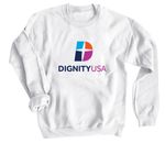 DignityUSA Stacked Logo Apparel, a White Crewneck Sweatshirt