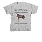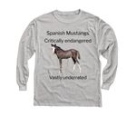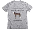 After we had a dummy foal at the farm and were able to help raise money with these shirts, we wanted to help someone who has been a backbone of breed conservation and breeding endangered Spanish Mustangs. Curly here was also a dummy foal, born without the instincts to nurse and survive. He needed surgeries and his first three weeks of life in a vet hospital. Your purchase will help pay the crippling 15k bill of a sweet little colt's life. Thank you!