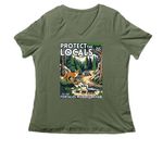 Foxtales Wildlife Rehab, a Military Green Women's Relaxed V-Neck Tee