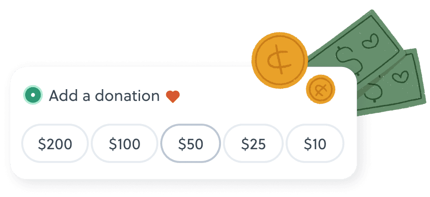 During checkout, you can add an addtional donation to your order. These extra funds help the nonprofit reach their fundraising goals faster!