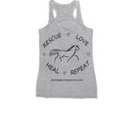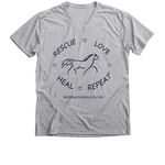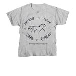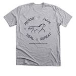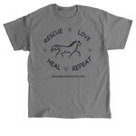 By purchasing a shirt, you help raise funds to care for Felony Melonie and her whole family, plus all the other horses in our care. We have taken in 12 horses in the last month and just received word we have seven more critical horses in County holding.