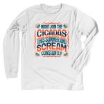 Join the Cicadas T-Shirt, a Solid White Blend Premium Unisex Tee