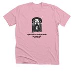 KBOO's 2025 Pride Merch, a Heather Pink Premium Unisex Tee