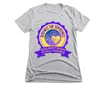 Bring In Spring Purple Logo, a Purple Rush and Heather White 3/4 Sleeve Baseball Tee