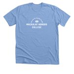 Macaulay at the College of Staten Island, a Heather Carolina Blue Premium Unisex Tee (back-view)