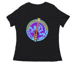 Magnetic Pickup Shoe E-Guitar, a Black Women's Relaxed V-Neck TeeMagnetic Pickup Shoe E-Guitar, a Black Women's Relaxed V-Neck Tee (back-view)