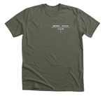 MODEL TRAIN CLUB, a Heather Military Green Premium Unisex TeeMODEL TRAIN CLUB, a Heather Military Green Premium Unisex Tee (back-view)