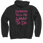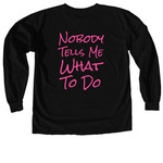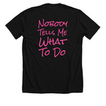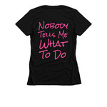 Nobody Tells Me What To Do - Pink, a Black Women's Slim Fit Tee (back-view)Nobody Tells Me What To Do - Pink, a Black Women's Slim Fit Tee