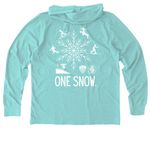PSIA-AASI ONE SNOW Shirts, a Saltwater Blue Allmade Organic Cotton Mineral Dye Hoodie Tee (back-view)PSIA-AASI ONE SNOW Shirts, a Saltwater Blue Allmade Organic Cotton Mineral Dye Hoodie Tee