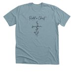 Rooted in Christ, a Heather Blue Lagoon Premium Unisex Tee (back-view)