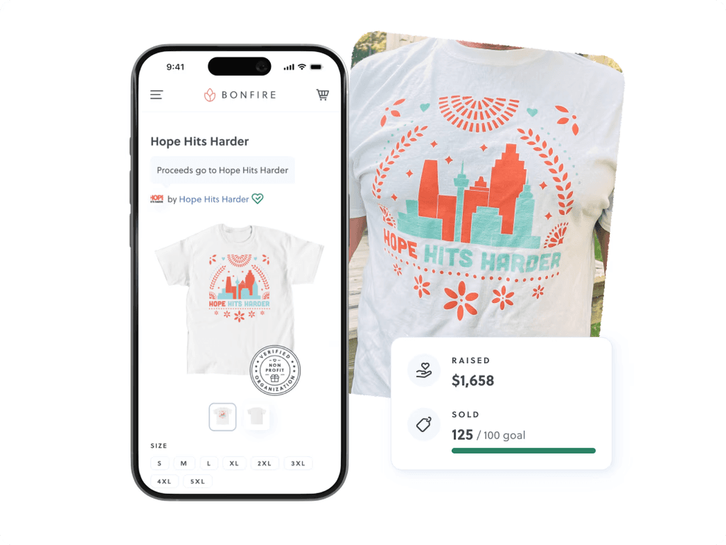 Raise additional funds for a cause you care about with custom tie-dye products. Either sign up for a nonprofit you work for, or create a giving campaign to support over 100,000 nonprofits available on Bonfire.