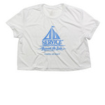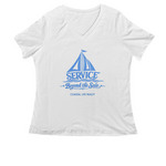 Service Beyond the Sale, a White Women's Relaxed V-Neck Tee