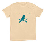 Suddenly, I'm into birdwatching?, a Soft Cream Premium Cotton Tee (back-view)