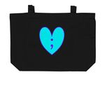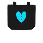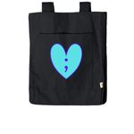 This tote features a teal heart with a semicolon; a symbol of hope, resilience, and the choice to keep going.