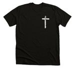 The Old Rugged Cross, a Solid Black Blend Premium Unisex Tee (back-view)