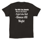 The REAL Gay Agenda, a Solid Black Blend Premium Unisex TeeThe REAL Gay Agenda, a Solid Black Blend Premium Unisex Tee (back-view)