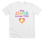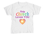 This Church Loves You, a White Youth Unisex Tee (back-view)