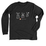 Three little Humanex birds, a Heather Midnight Navy Premium Unisex Tee